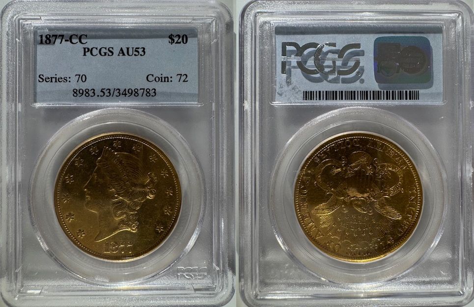 1877-CC $20 Liberty, 8983.53 / 3498783. PCGS AU53. *pending*