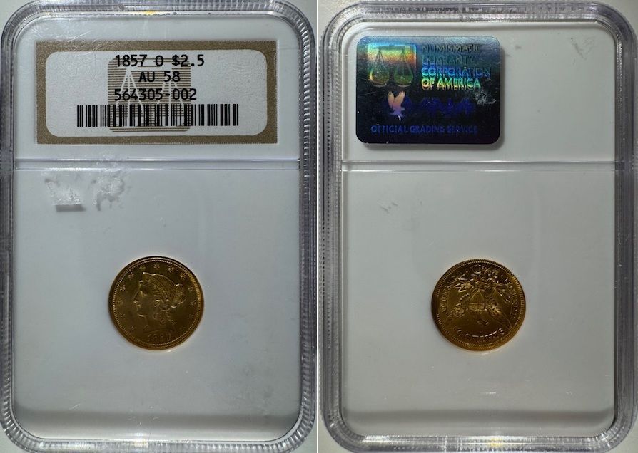 1857-O $2.50 Liberty, 564305-002. NGC AU58. **CURRENT PRICE UPON REQUEST**