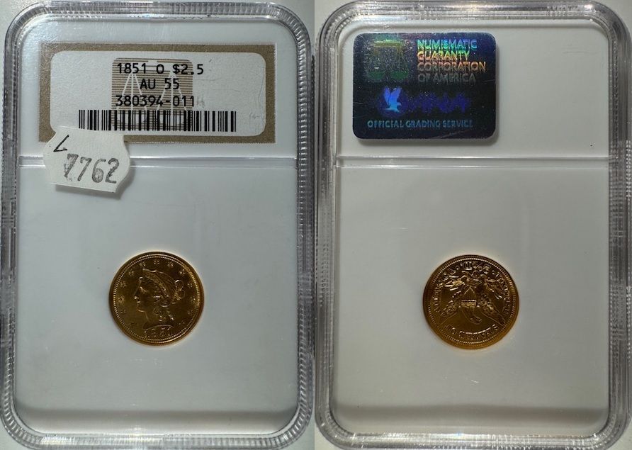1851-O $2.50 Liberty, 380394-011. NGC AU55. **CURRENT PRICE UPON REQUEST**