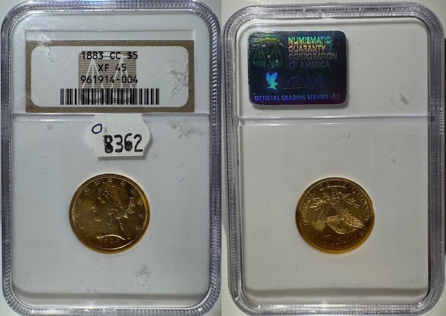 1883-CC $5 Liberty, 961914-004. NGC XF45. **CURRENT PRICE UPON REQUEST**