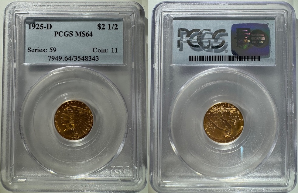 1925-D $2.50 Indian, 7949.64 / 3548343. PCGS MS64. **SOLD OUT**