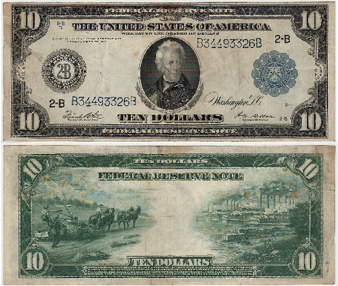 > 1914 Ten Dollars Federal Reserve Note (New York 2-B), FR-907. **SOLD OUT**