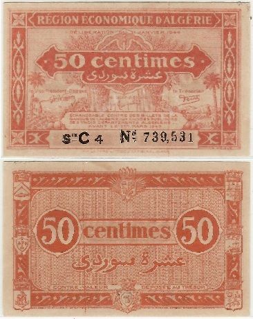 > Algeria L.1944 50 Centimes, Pick 97a, B151a