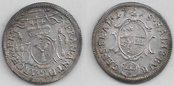 > AUSTRIA: Salzburg: Franz Anton (1709-27) 1718 4 Kreuzer; Hz 2457. **SOLD OUT**