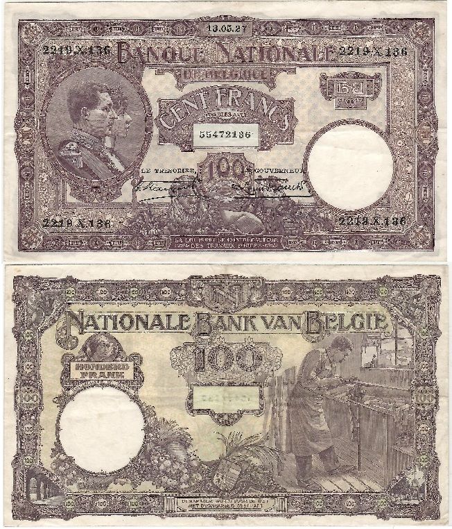 > Belgium 1927 100 Francs, Pick 95, B552c