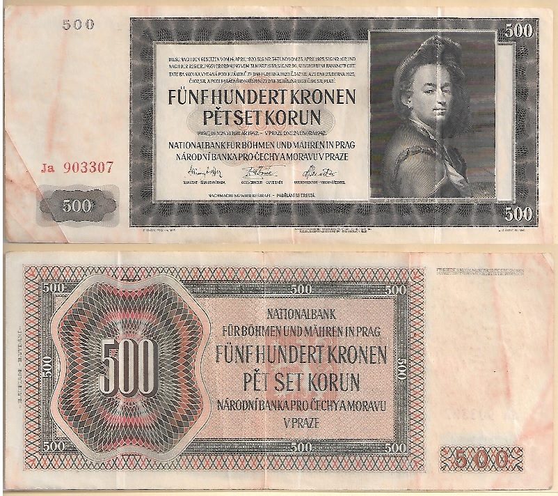 Bohemia & Moravia 1942 500 Korun, Pick 12a, B202a. Fine to Very Fine. **SOLD OUT**