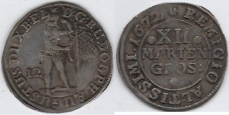 > BRUNSWICK-WOLFENBUTTEL: Rudolf August (1666-1685) 1672 12 Mariengroschen (1/3 Taler)