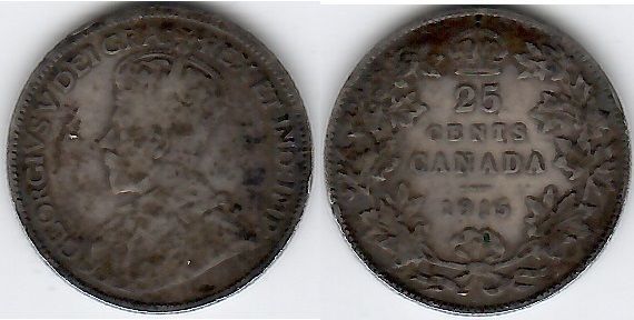 > Canada 1915 25 Cents, KM-24. **SOLD OUT**