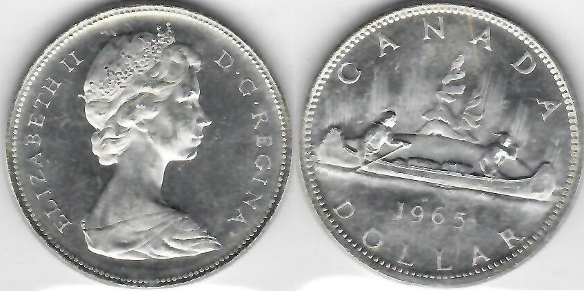 > Canada 1965 Dollar, large beads, pointed 5, KM-64.1