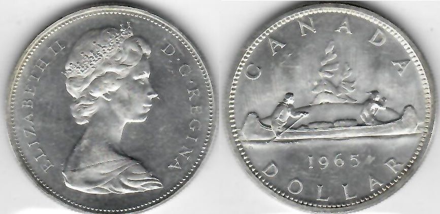 > Canada 1965 Dollar, medium beads, pointed 5, KM-64.1