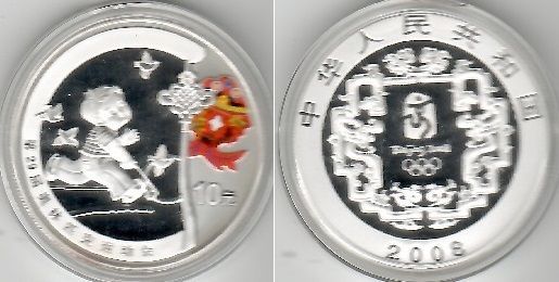 > China 2008-Z 10 Yuan, KM-1704; Beijing Olympics, boy playing ring hoop