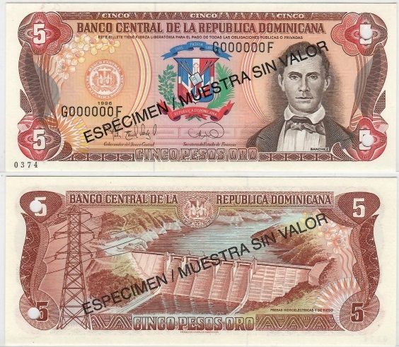 Dominican Republic 1996 5 Pesos Oro, SPECIMEN Note, Pick 152s1, B652bs. **SOLD OUT**