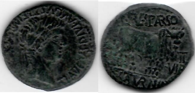 HISPANIA: Calagurris: Tiberius (14-37 CE) Ae As, L. Fulvius Sparsus and L. Saturninus; SNG Cop 585. **SOLD OUT**
