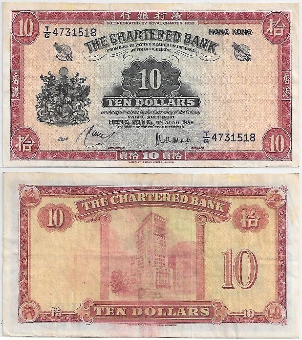 > Hong Kong: The Chartered Bank 1959 10 Dollars, Pick 64. **SOLD OUT**