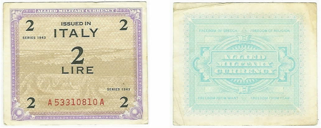 Italy: Allied Military Currency 1943 2 Lire, Pick M11a
