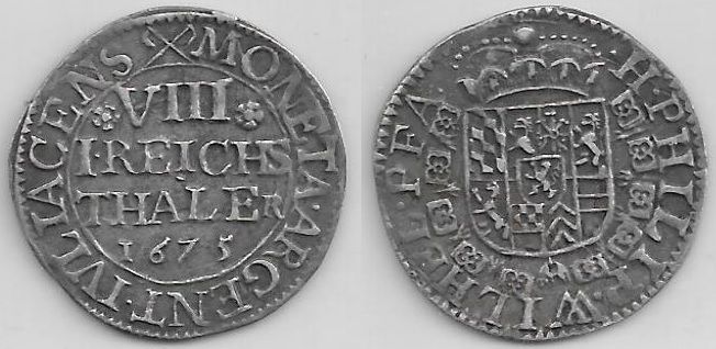> JULICH-BERG: Philipp Wilhelm von Neuburg (1653-79) 1675 1/8 Thaler; Noss 694e. **SOLD OUT**