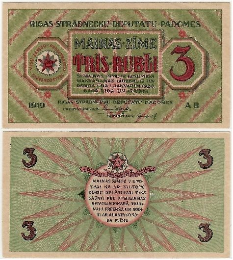 > Latvia: Riga’s Workers Deputies’ Soviet 1919 3 Rubli, Pick R2a