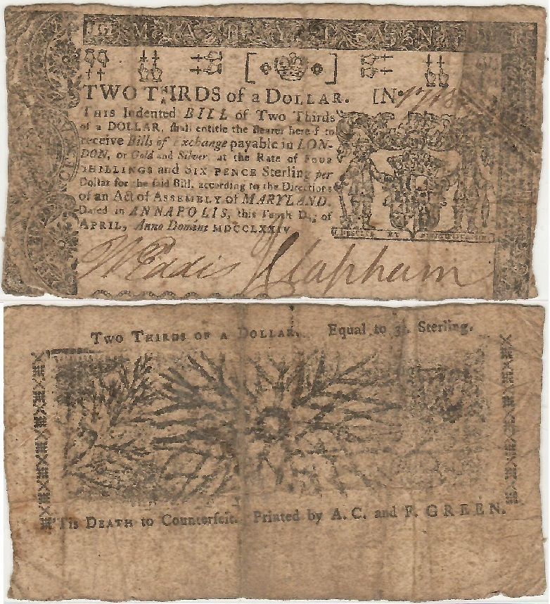 > MARYLAND April 10, 1774 2/3 Dollar, MD-65.