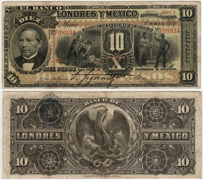 Mexico: Banco de Londres y Mexico 1913 10 Pesos, Pick S234e. Very Fine. **SOLD OUT**