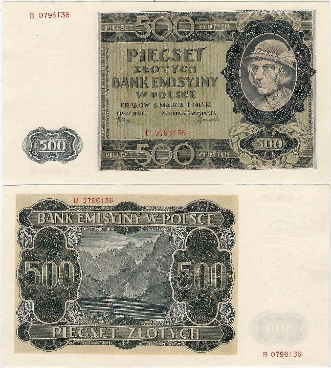 Poland 1940 500 Zlotych, Pick 98. Uncirculated.