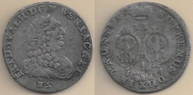 > PRUSSIA: BRANDENBURG 1687-HS 6 Groschen; v.Schr 1815. **SOLD OUT**