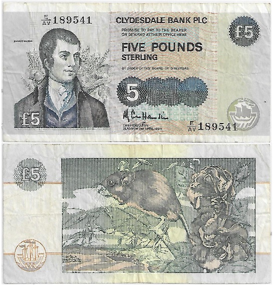 Scotland: Clydesdale Bank 1974 5 Pounds, Pick 218a, B1151a. Fine. **SOLD OUT**