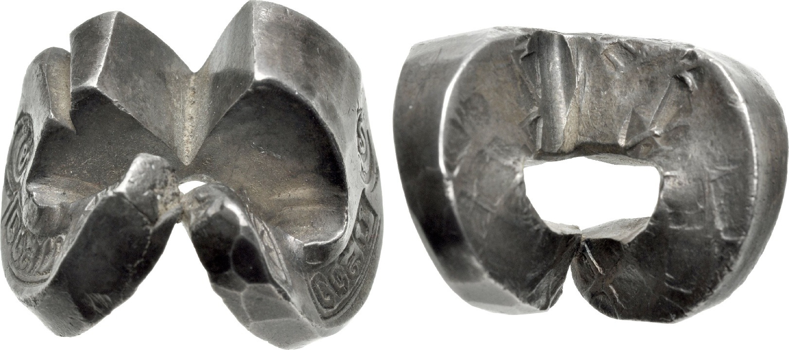 SIAM: Kingdom of Lannatai (Chiangmai) (1290-1556) Bent Saddle Money (Tamlung, 61.01g), Chiengsen mint. Mint name, value, and issue mark stamped twice along edge.