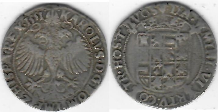 > SPANISH BRABANT: Charles V (1521-55) 1551 Vlieger (4 Patacas); VGH 189-1b. **SOLD OUT**