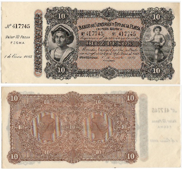 URUGUAY: Banco de Londres y Rio de la Plata: 1 Jan 1883 10 Pesos,