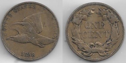 1858 Flying Eagle Cent, large letters. Nice Very Fine, but with dig on reverse. **SOLD OUT**