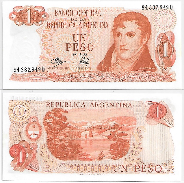 > Argentina ND (1970-73) 1 Peso, Pick 287, B340d. Block D.