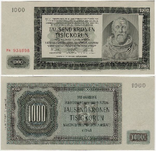 > Bohemia & Moravia 1942 1000 Korun, Pick 15a, B204a