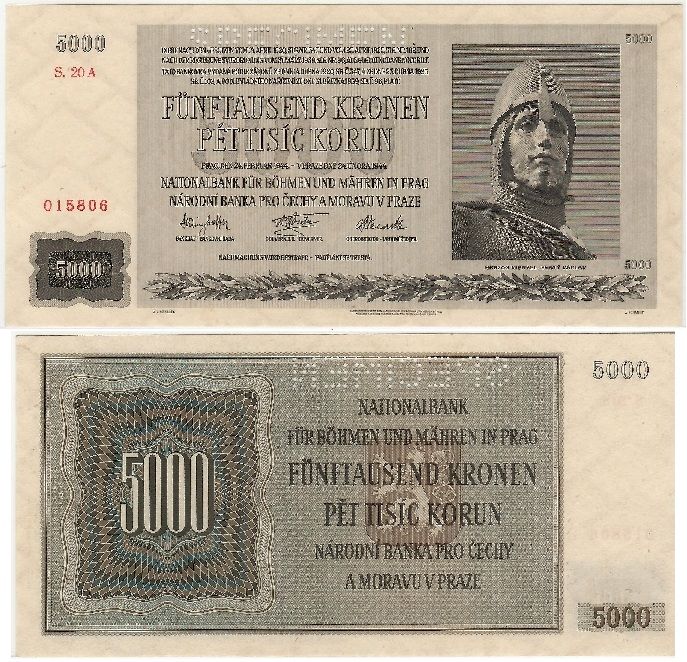 > Bohemia & Moravia 1944 5000 Korun, SPECIMEN Note, Pick 17s