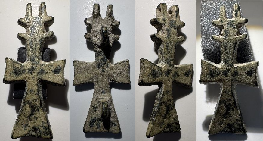 BYZANTINE EMPIRE: Eastern (8th-9th Century) Pectoral Cross (57mm, 26.08g); AM0351. Very rare distinct style. Complete.