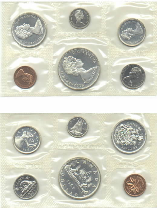 Canada 1965 Prooflike Set (6 coins), KM-PL16. Prooflike Uncirculated in original mint packaging. 1.11 troy ounces actual silver weight. **SOLD OUT**