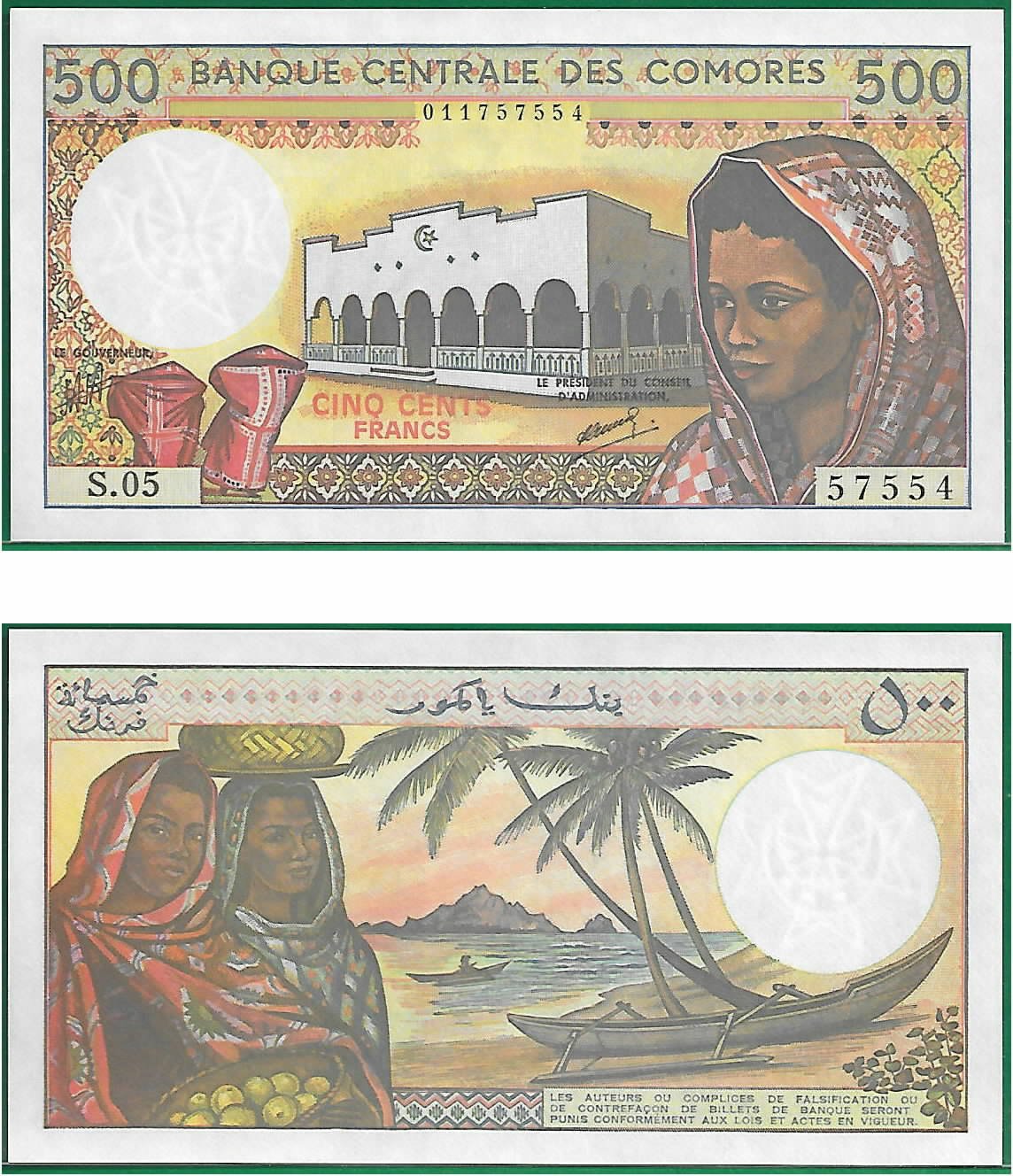 Comoros ND (1994) 500 Francs, sig. 9, Pick 10b, B301d