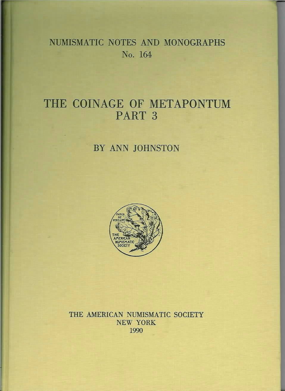COINAGE > The Coinage of Metapontum Part 3 (Numismatic Notes and Monographs (ANSNNM)) (Pt. 3), Ann Johnston. **SOLD OUT**