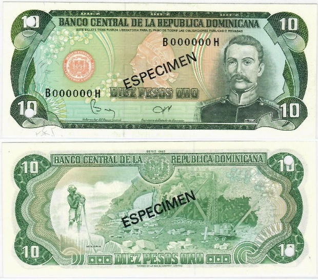 > Dominican Republic 1982 10 Pesos Oro, SPECIMEN Note, Pick 119s1, B653es1
