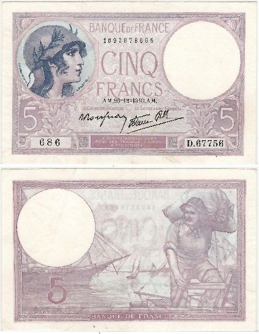 France 1940 5 Francs, Pick 83. Uncirculated.