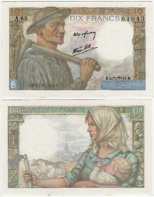 > France 1944 (Jan 13) 10 Francs, Pick 99e