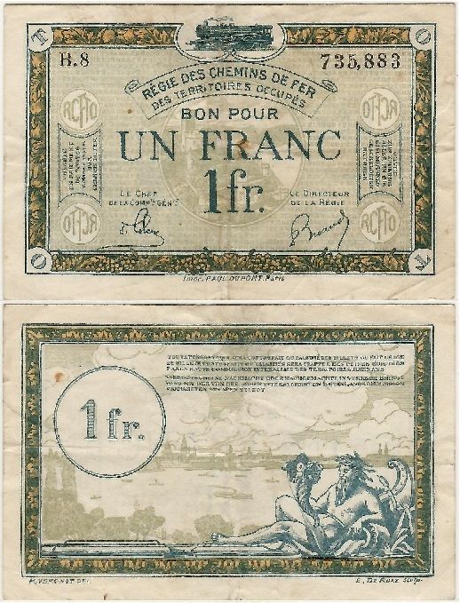 > France: Regie des Chemin de Fer des Territoires Occupes (Saarland) ND (1923) 1 Franc, Pick R5