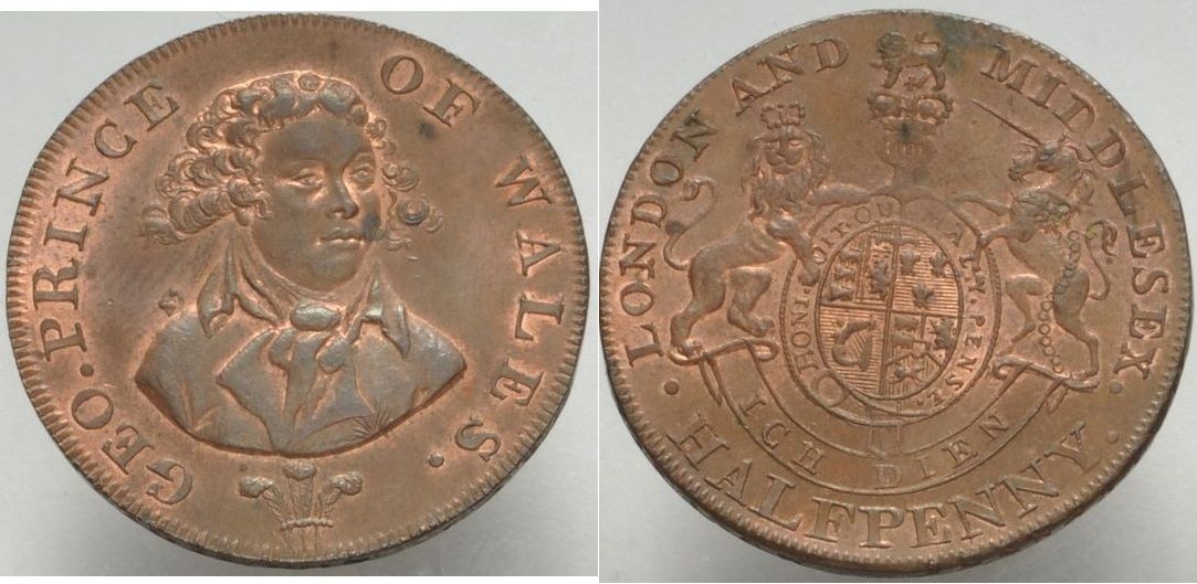 > GREAT BRITAIN 1794 Halfpenny, GEO PRINCE OF WALES, D&H Middlesex 952