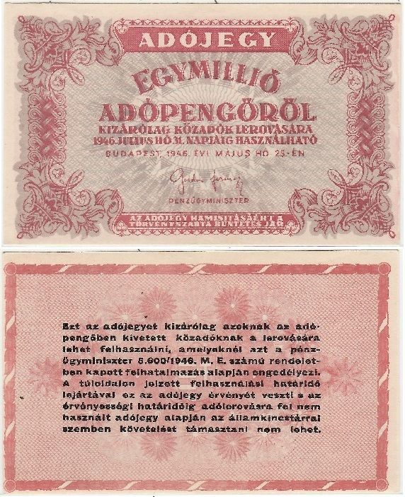 > HUNGARY 1946 1 Million Adopengo, Pick 140c.