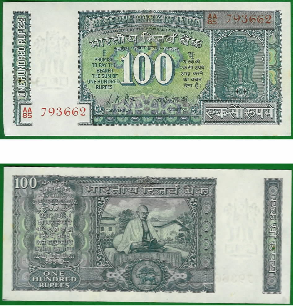 > India ND (1969-70) 100 Rupees, Centennial of birth of M.K. Gandhi, Pick 70a, B255a