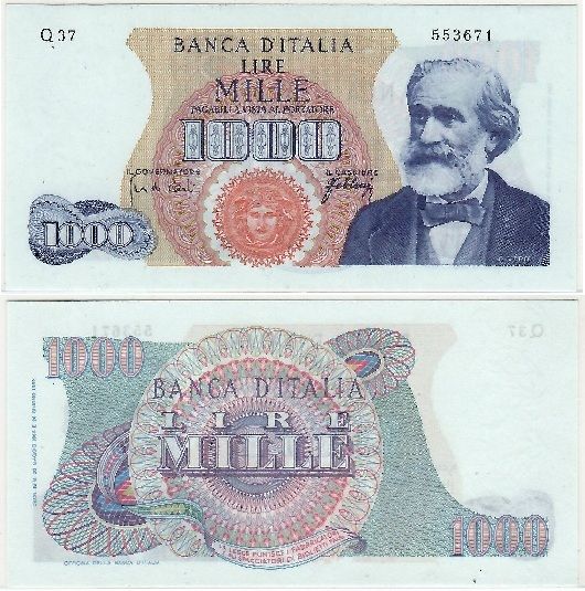 Italy 1966 1000 Lire, Pick 96d, B447f