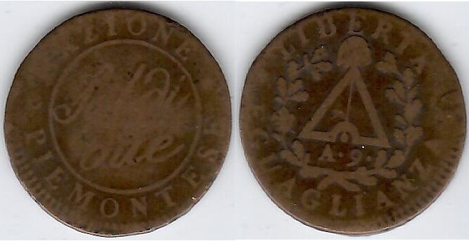 > ITALY: Piedmont Republic Anno 9 (1800) 2 Soldi, C-3