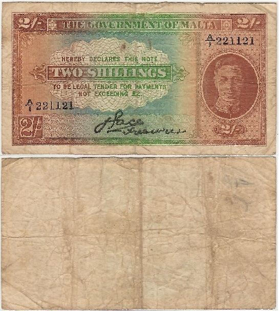 > Malta ND (1942) 2 Shillings, Pick 17a, B116a
