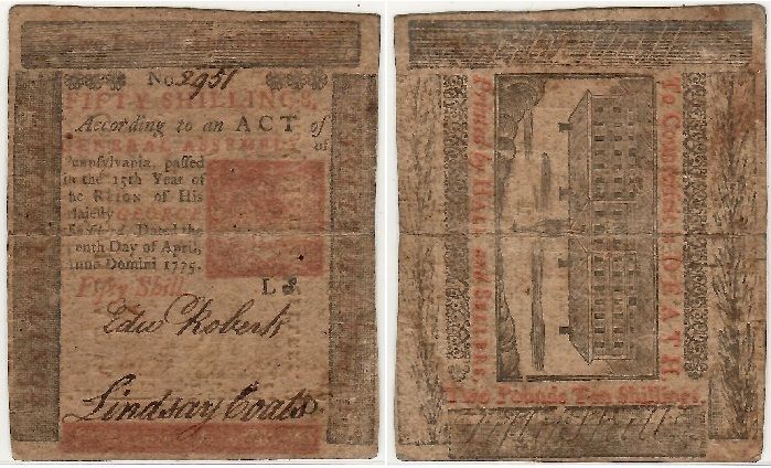 > PENNSYLVANIA April 10, 1775 50 Shillings, PA-175. *pending*