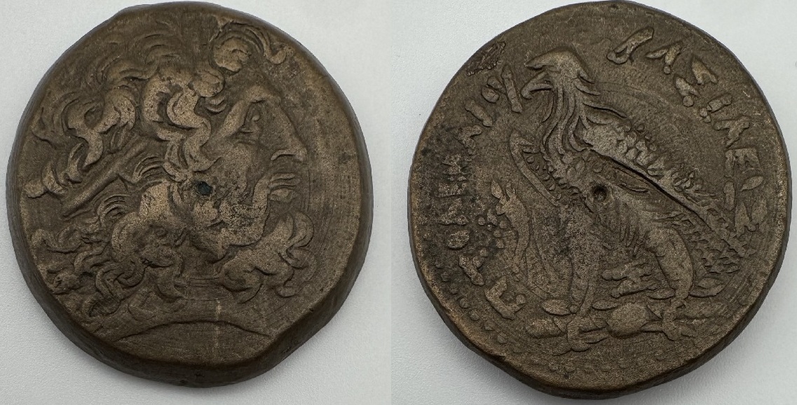 PTOLEMY IV, Philopater (221-205 BCE) Ae 34 (32.95g). Obv: Diademed head of Zeus-Ammon right; Rev: Eagle with wings closed standing left on thunderbolt. About Very Fine. *pending*