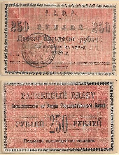 > Russia: Nikolaevsk-on-Amur Branch Government Bank 1920 250 Rubles, Pick S1291. **SOLD OUT**